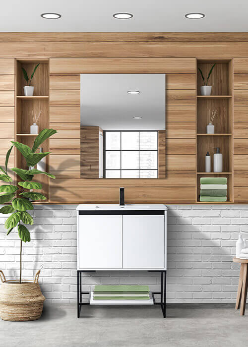 The finest of all our fixtures, the Urbania II Collection is our flagship model newly unveiled in anticipation of the 2020 spring season. It introduces an exceptional presence in your home or corporate space. True to its name, this contemporary yet timeless design looks marvelous in spaces both urban and suburban. Choose from three gorgeous colors: White Matte Finished in melamine, White Matte is bright and open, and beautifully contrasts the black frame for stark effect, Walnut color crafted with an upscale variety of fine real wood, Sleek Walnut adds a luxurious dynamic with a visible grain, Dark Gray Current and captivating, Dark Gray features a premium plywood with melamine finish, with the wood grain elegantly showing through. With its open look and shelf on the bottom, Urbania looks great in any setting. It is constructed of durable plywood material, the wide Two door vanity offers ample storage space.